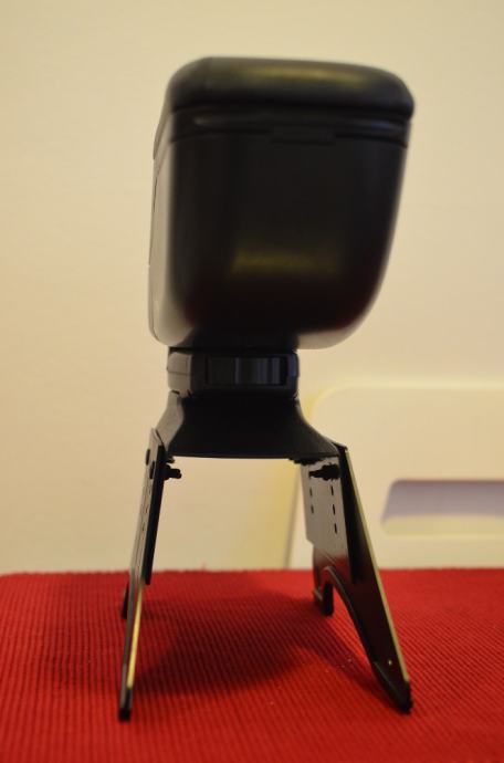 VAŽNO: gornji (najuži) adaptera (nosača) je 10.5cm (vidjeti zadnju sliku, iznad leptir-matica). Bočne pločice su od tvrde plastike koja se može širiti i pritegnuti na razne širine središnje konzole, ali gornji dio je ograničavajući u slučaju da ga želite instalirati direktno na konzolu. Minimalni razmak između sjedala (gornji dio kutije) je 14cm. I gornji dio i bočne stranice se mogu skinuti, u slučaju da želite neko drukčije rješenje za montažu (npr. zavidati direktno na konzolu s donje strane).