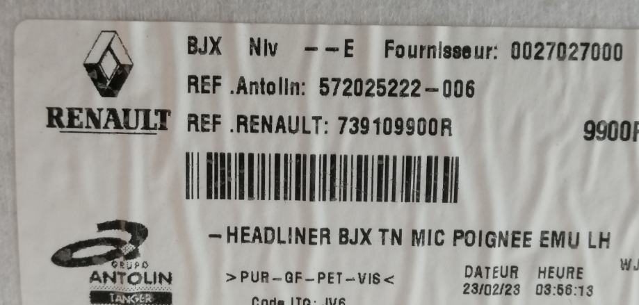 Krovni tapacirung, unutarnja obloga krova, nebo za Dacia Sandero III (2023.)