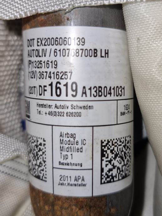 Lijevi i desni Airbag krova za Astra J hatchback 2011/610768700B i 610768701B/Mogućnost dostave HP expres-om/Cijena je po komadu/Zvati od 08:00-16:00.