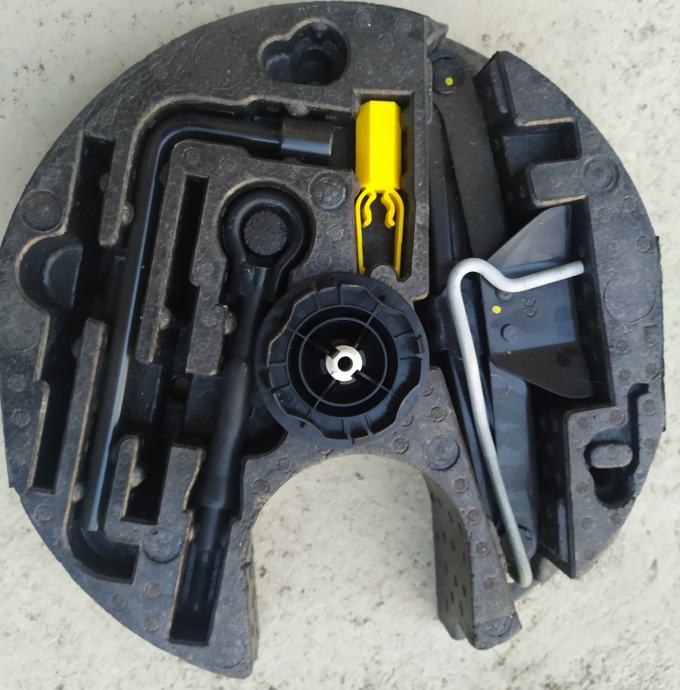 alat za izmjenu rezervnog kotaca,dizalica, kljuc 17 ,kuka za vuču alat za cepove vijaka kotača,psa grupa Citroen, Peugeot, Opel komplet 50 e