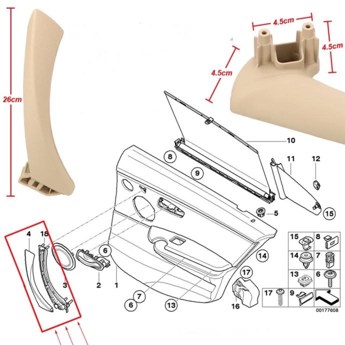 Komplet uključuje unutarnji i vanjski dio ručke te vijke za ugradnju