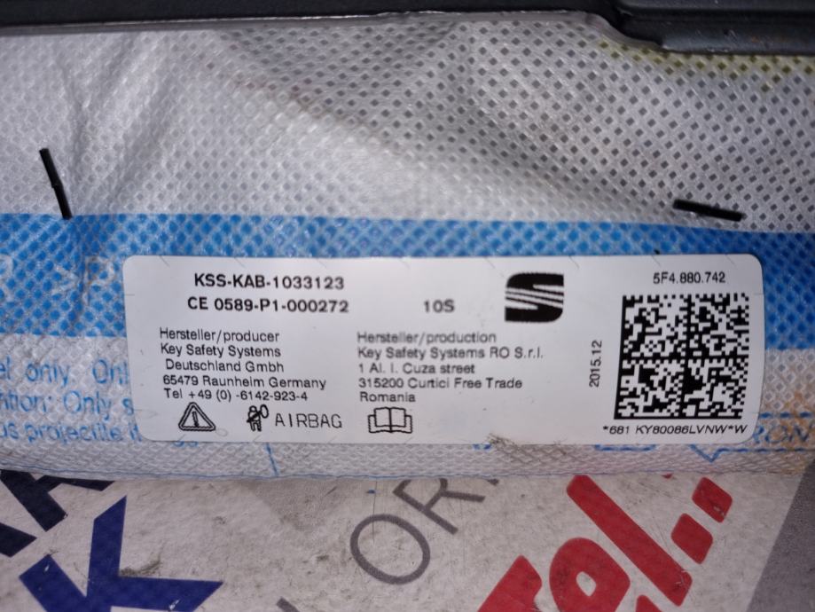 Desni Airbag krova za Leon 2016/Mogućnost dostave HP expres-om/Zvati od 08:00-16:00.
