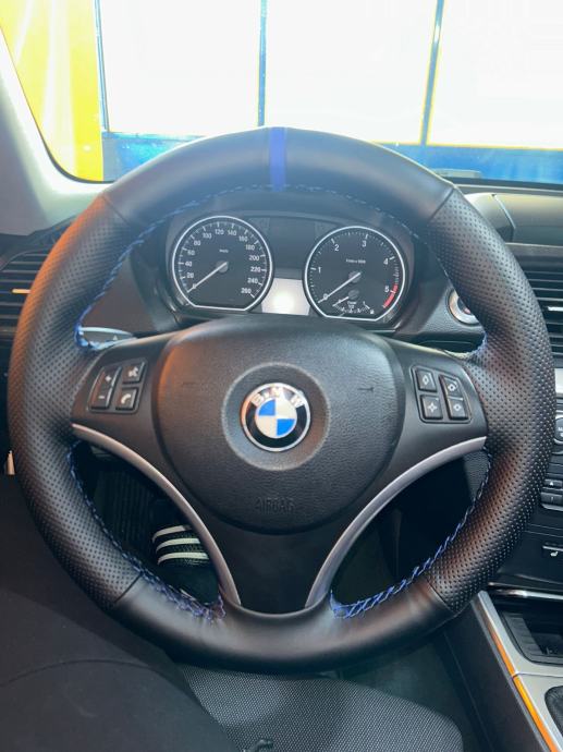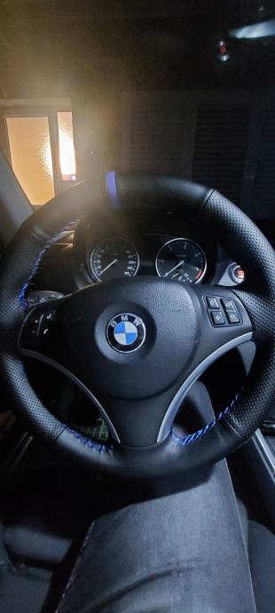 Original volan od BMW serija 1 ali pase i na ostale neke serije kao 3 na novo tapeciran u crnu kozu sa plavim koncem kao u M seriji skupa sa blendom ali bez zracnog jastuka kao novi