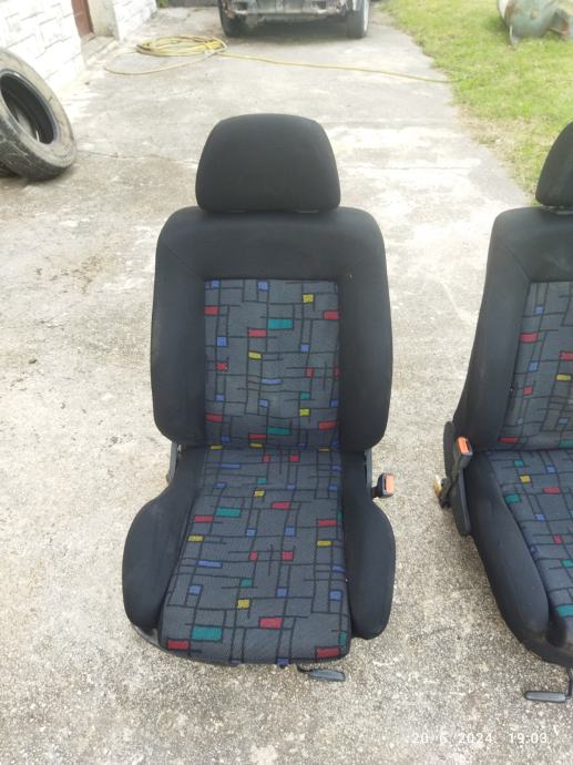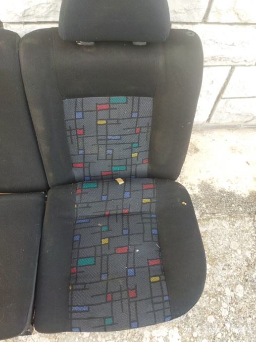 Prednje vozačevo je krpano,naslonjači glave zadnjeg sjedišta kao da nisu orginal različita nijansa u boji.Sa zadnjeg naslona je otpala tapiserija.
