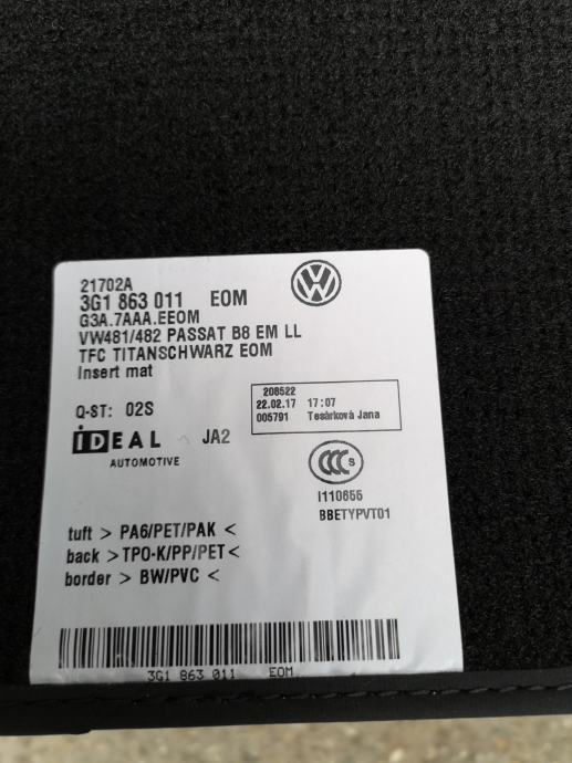 originalni tapeti velur za Passat B8 2015 2016 2017 2018 2019