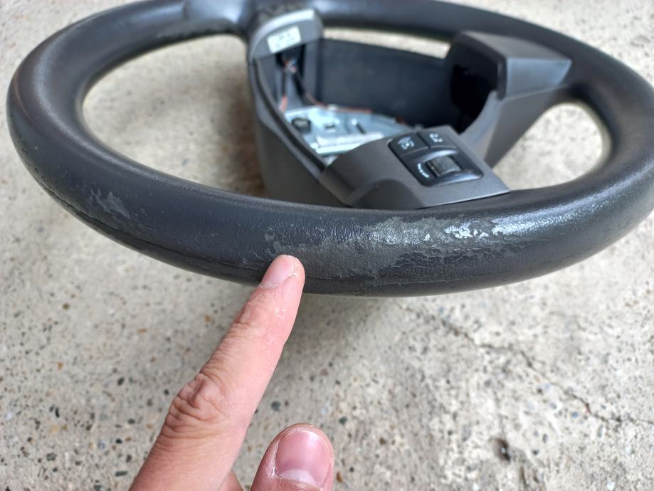 Volan ima tragove korištenja na lijevoj strani (oguljen plastični premaz, može se premazati ili presvući kožom).