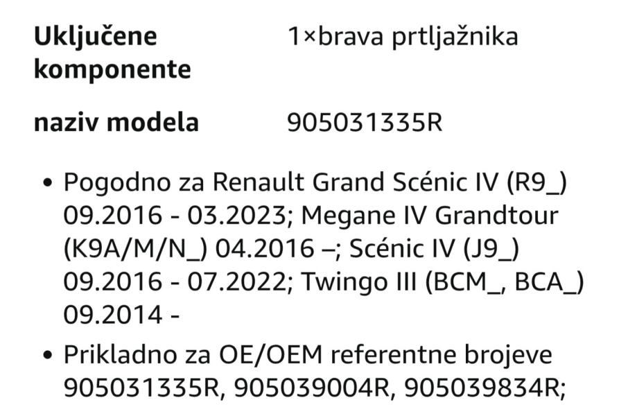 Prodajem bravu prtljažnika..novo..Prikladno za OE/OEM referentne brojeve 905031335R, 905039004R, 905039834R;