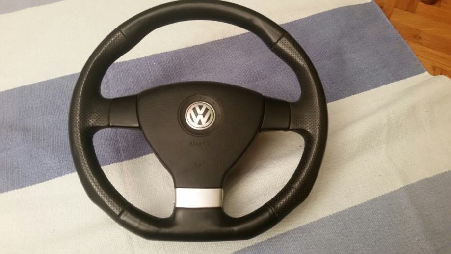 Prodajem volan 2007.g. s airbagom za golf 5. Volan je unikat, preoblikovan u sportski kao ( GTI GTD R ) i presvučen kod odličnog majstora svog zanata s pravom kožom ( kombinacija perforirane i glat ). Volan je kao nov!