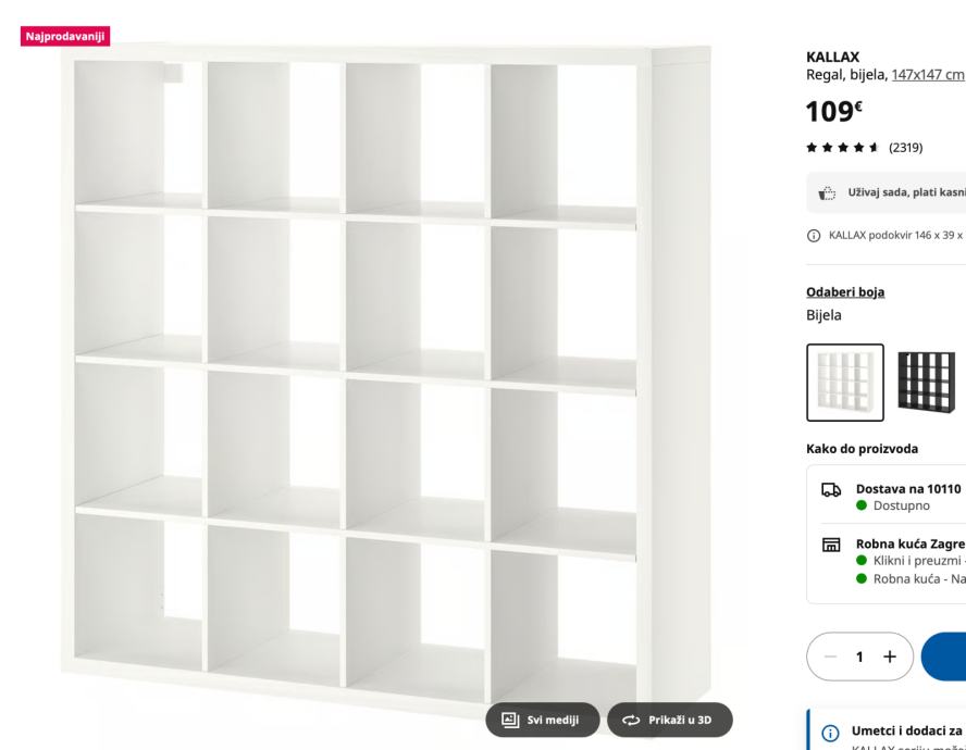Rastavljanje i prijevoz je odgovornost kupca (zgrada ima lift).