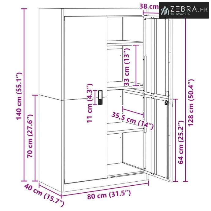 Prostrano skladištenje: S dovoljno prostora unutra, ovaj ormar je pogodan za razne stvari, od uredskog pribora do osobnih stvari, olakšavajući organizaciju u različitim okruženjima.