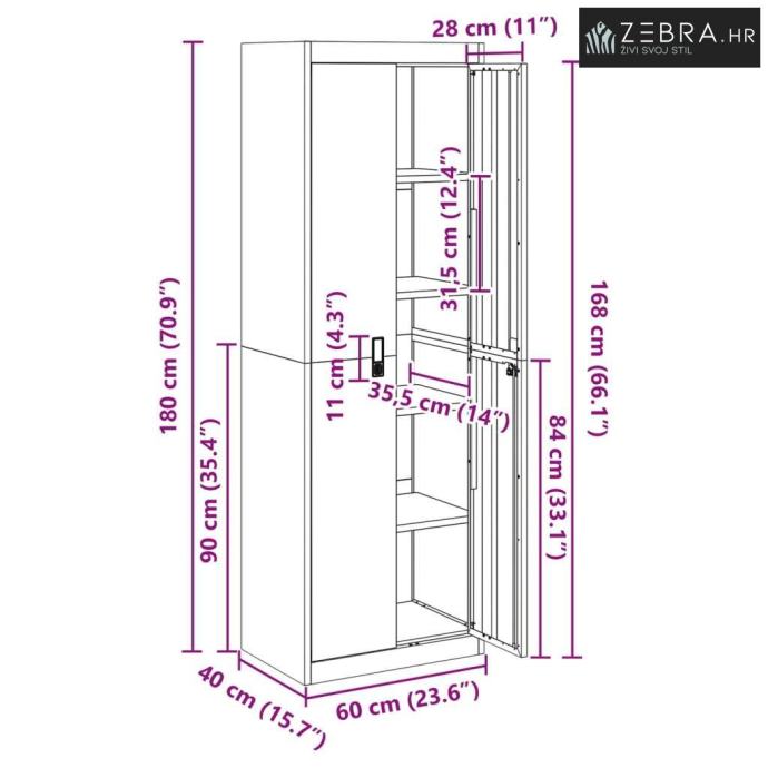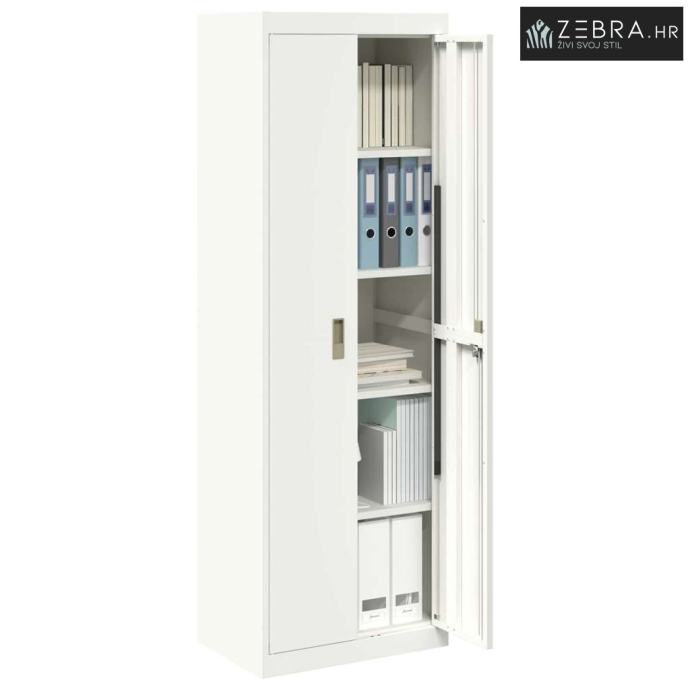 Zaključiva vrata: Ovaj ormar ima zaključiva vrata, pružajući bolju zaštitu za dragocjene stvari ili osjetljive dokumente. Ova značajka je posebno bitna za uredska okruženja gdje je privatnost važna, ili kod kuće gdje je sigurnost djece prioritet.