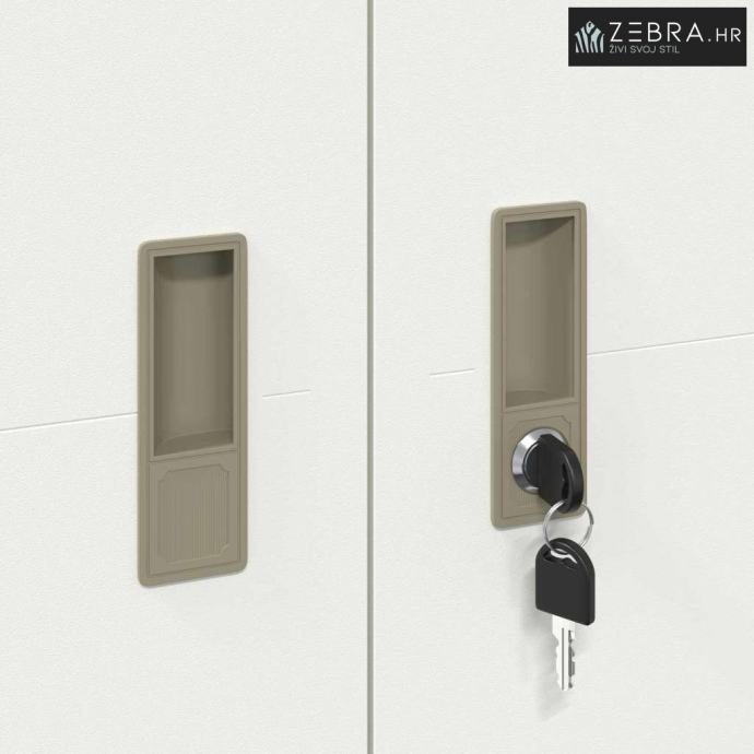 Zaključiva vrata: Ovaj ormar ima zaključiva vrata, pružajući bolju zaštitu za dragocjene stvari ili osjetljive dokumente. Ova značajka je posebno bitna za uredska okruženja gdje je privatnost važna, ili kod kuće gdje je sigurnost djece prioritet.