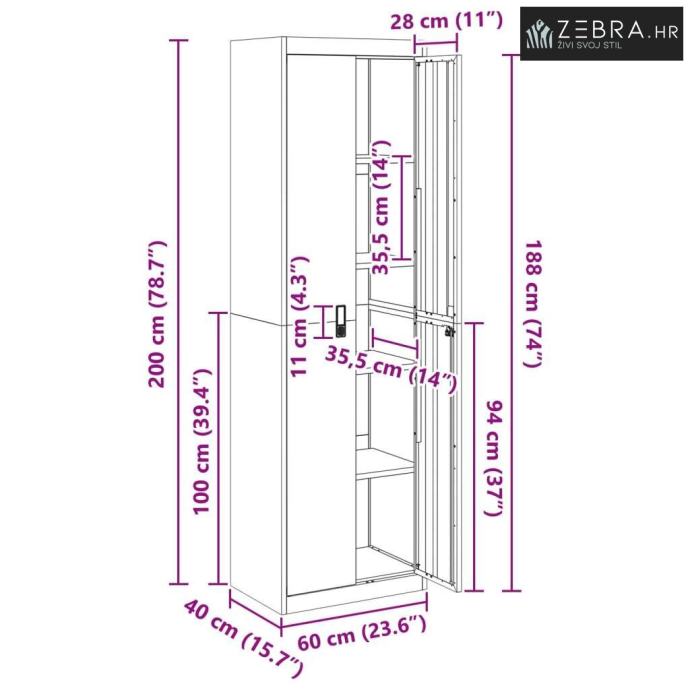 Prostrano skladištenje: S dovoljno prostora unutra, ovaj ormar je pogodan za razne stvari, od uredskog pribora do osobnih stvari, olakšavajući organizaciju u različitim okruženjima.