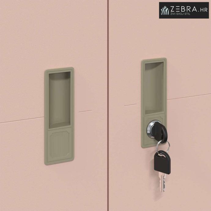 Zaključiva vrata: Ovaj ormar ima zaključiva vrata, pružajući bolju zaštitu za dragocjene stvari ili osjetljive dokumente. Ova značajka je posebno bitna za uredska okruženja gdje je privatnost važna, ili kod kuće gdje je sigurnost djece prioritet.
