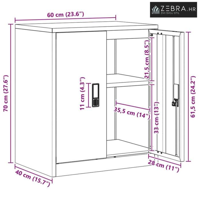 Zaključavajuća vrata: S zaključavajućim vratima, pruža bolju sigurnost za vaše vrijednosti ili osjetljive dokumente, što je posebno važno u uredima i domaćinstvima s malom djecom.