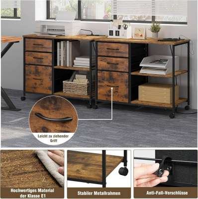 ROBUSTAN I IZDRŽLJIV: Uredski kontejner izrađen od E1 drvenog materijala s melaminskim furnirom i čvrstim metalnim okvirom strukturno je stabilan i može podnijeti do 83 kg. Ladice od tkanine s integriranim kartonom i MDF-om su prozračne i dimenzijski stabilne.