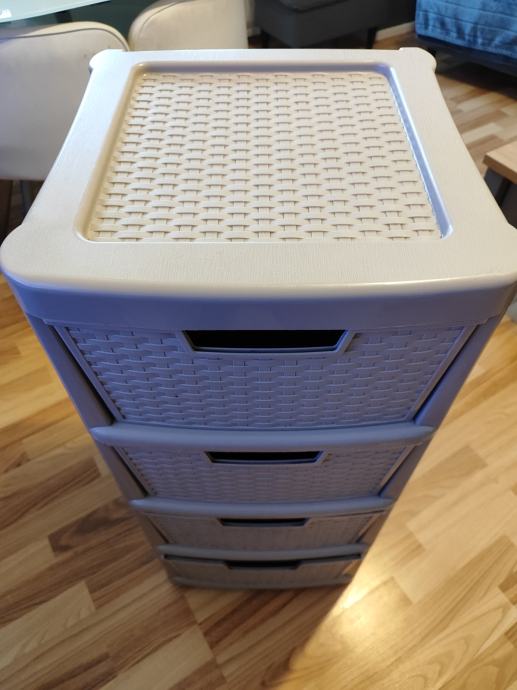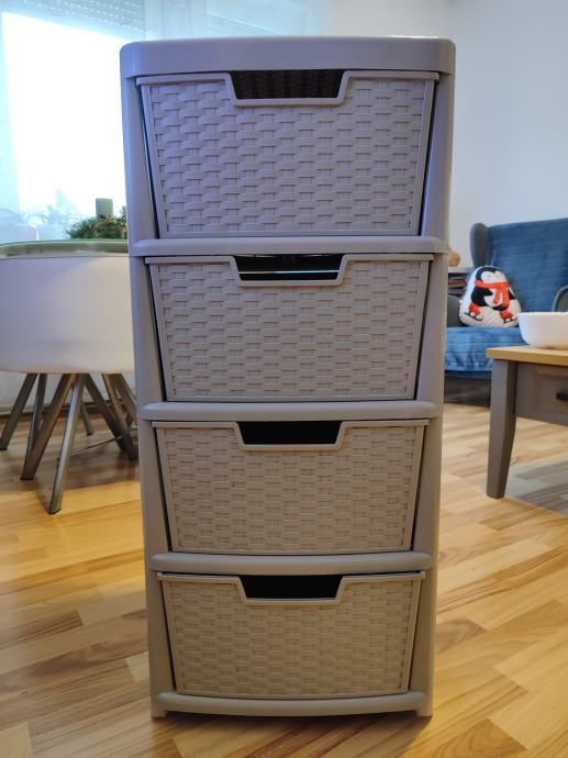 Plastični ladičar sa 4 ladice, sive boje. Dimenzije 85x39x39 cm. U jako dobrom stanju.