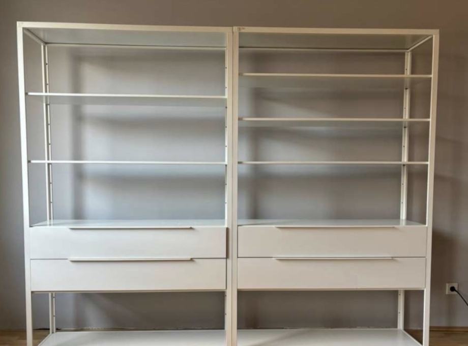 Prodajem 2 police (moze i pojedinačno) s ladicama Fjälkinge od Ikee u bijeloj boji. Radi se o dva modula koja zajedno čine jednu cjelinu s nekoliko polica po visini i ladicama u donjem dijelu. Konstrukcija je metalna, otvorenog dizajna, što daje prostoru prozračan izgled. Svaka polica je podesiva po visini, pa je raspored lako prilagoditi prema potrebi.