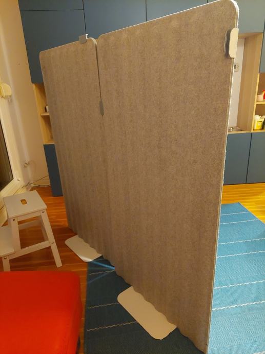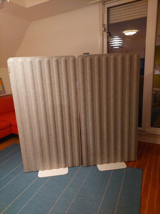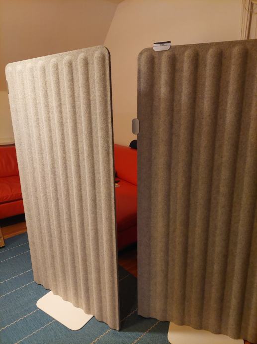 Samostojeći filc zvučni i vizualni paravan na odvojivom bijelom postolju. Jedan za 85 eura, zajedno 155 eura