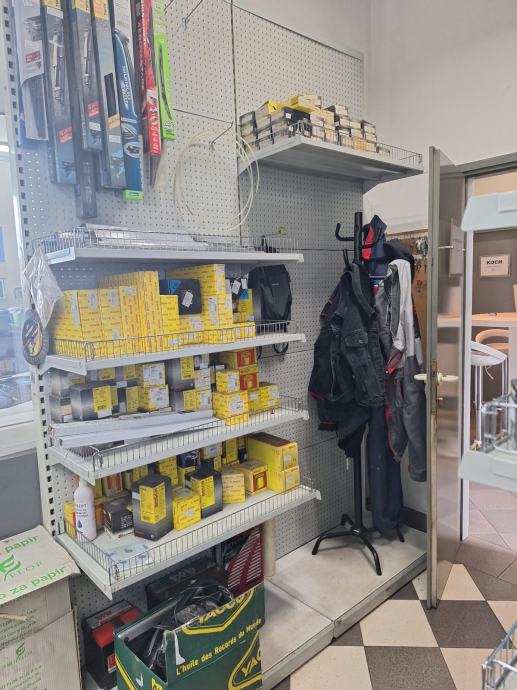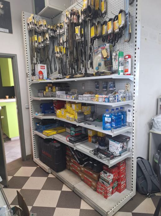 Metalne police sa rupičavom zadnjom plohom za umetanje različitih nosača za robu.