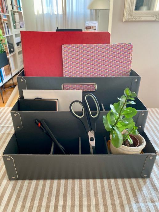 Organizator za radni stol s više pretinaca. Dimenzije: širina 35cm, dubina 24,5cm i visina 22cm. Ikea.