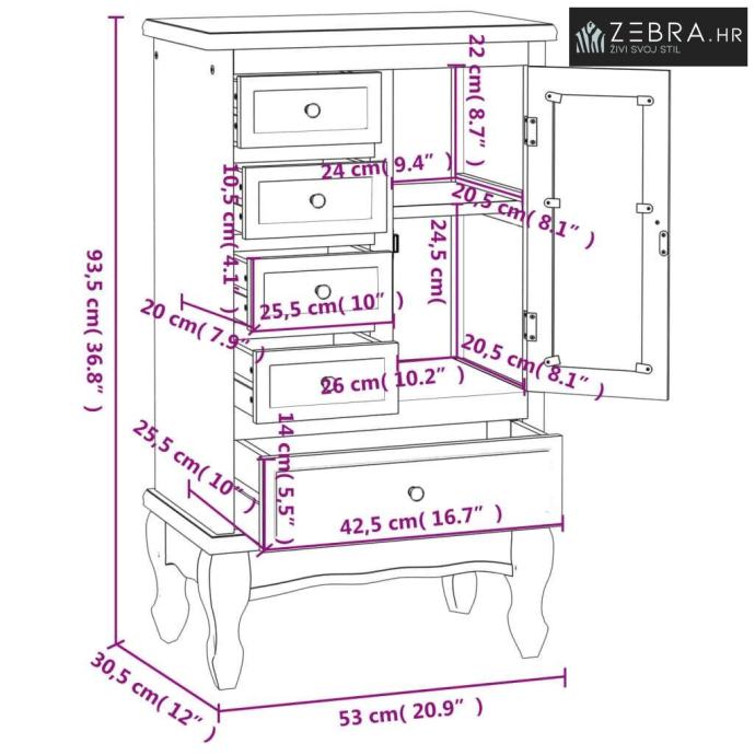Ovaj ormarić antiknog dizajna izvrstan je organizator u uredu, dnevnom boravku, spavaćoj sobi itd. Sigurno će biti odličan dodatak vašoj spavaćoj sobi, radnoj sobi ili čak hodniku.