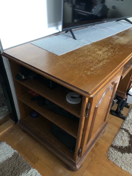 Potrebno prebrusiti i izlakirati samo radnu površinu kako bi stol bio nov, to se može odraditi uz dodatnu naknadu.