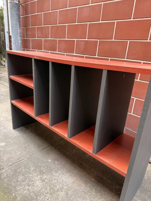 Prodajem samostojeće police kombinacije tamnosive i crveno-smeđe boje u drvenastom dekoru. Police imaju nekoliko pregrada i polica, što pruža dosta prostora za organizaciju dokumenata, mapa i raznih uredskih ili kućnih predmeta. Konstrukcija je čvrsta, a dimenzije su prikladne za uredski ili stambeni prostor.