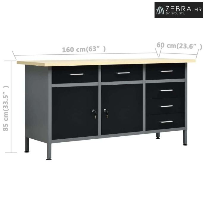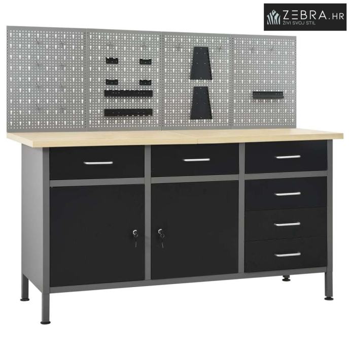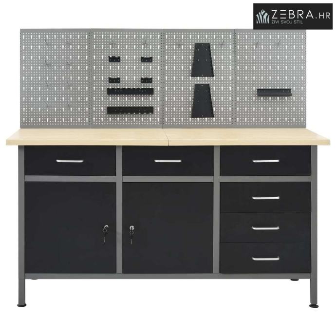 Izdržljivi radni stol ističe se velikim prostorom za pohranu i nosivošću od 500 kg. Velika i čvrsta stolna ploča pruža stabilnu platformu za sve popravke. Radni stol ima 6 ladica, što osigurava da možete dobro organizirati svoje alate, dijelove i pribor poput vijaka, čavala i ljepljive trake. Sve ladice opremljene su mehanizmom s kugličnim ležajem za glatko klizanje. Tu su 2 police i veliki odjeljak s 2 vratima koja se mogu zaključati, za smještanje bušilica, bubnjeva s kabelom i brusilica. Uz to, noge se mogu podesiti po visini. Ova radna stanica izrađena je od vrhunskog čelika i konstruiranog drva, što je čini izuzetno čvrstom, izdržljivom i jednostavnom za čišćenje. Lako se sastavlja.