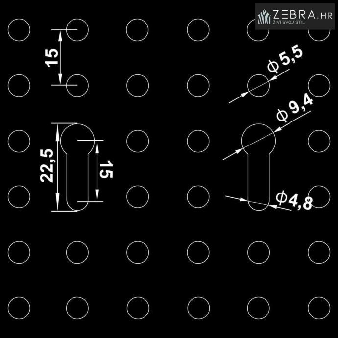 Veličina rupe koja nije okrugla: 9,4 x 22,5 mm (Š x V)