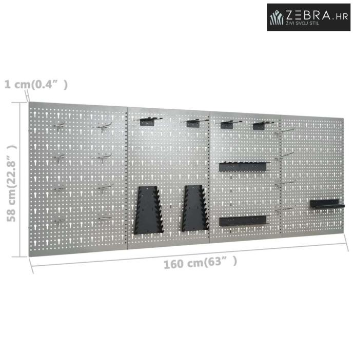 Ove ploče za alat izrađene su od čvrstog čelika kako bi podnijele težinu raznih alata, poput bušilica, kliješta, odvijača i ključeva. Ploče su perforirane za jednostavno i sigurno pričvršćivanje alata. Četiri zidne ploče mogu se pričvrstiti zajedno radi dodatne krutosti. Idealan su dodatak vašem radnom stolu i ormarićima za radionice, s praktičnom širinom 160 cm.