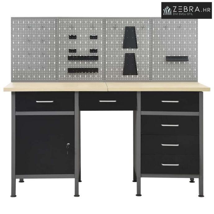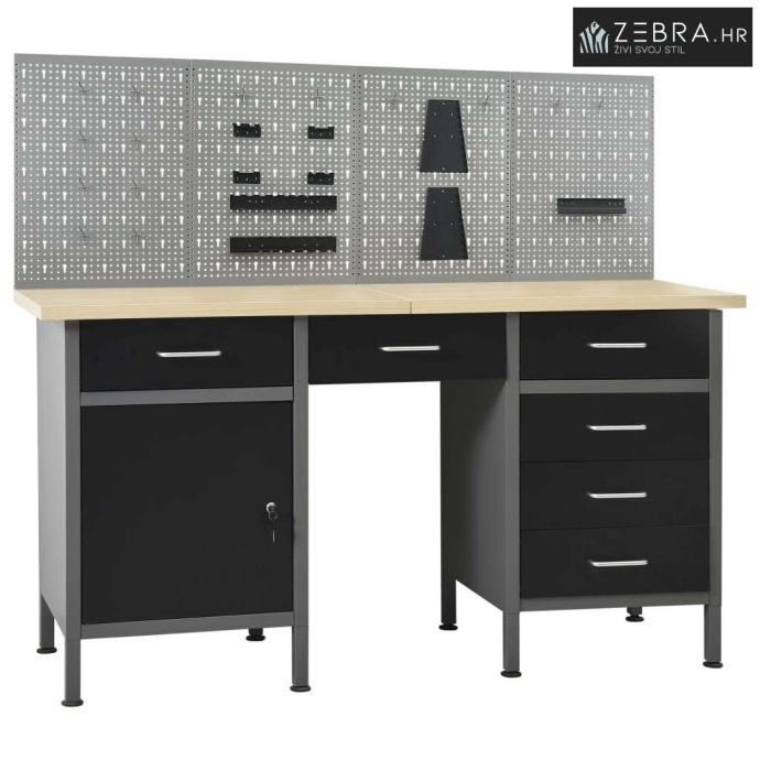 Ovaj set sastoji se od 1 radnog stola i 4 zidne ploče, zbog čega će biti praktično rješenje za pohranu za vašu radionicu i garažu.