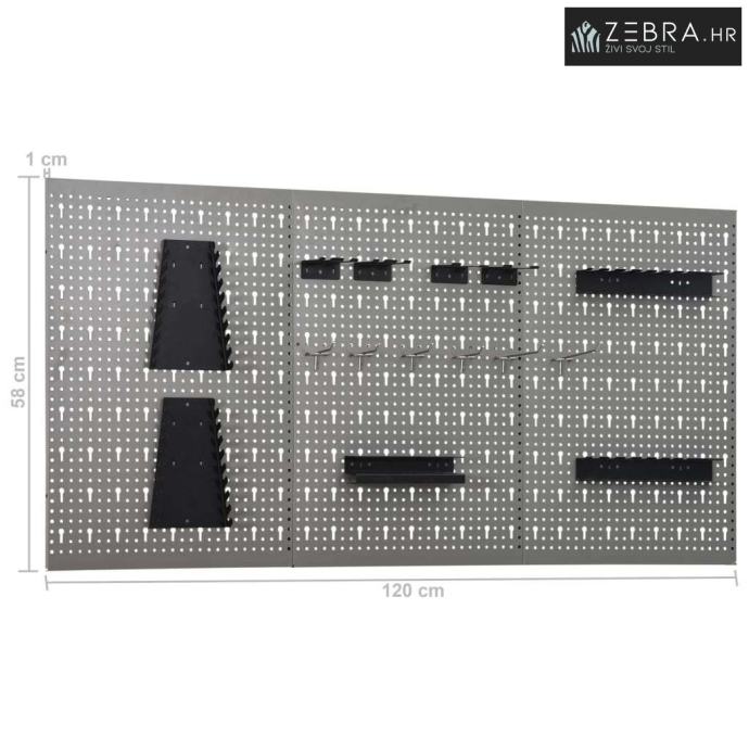 Ove ploče za alat izrađene su od čvrstog čelika kako bi podnijele težinu raznih alata, poput bušilica, kliješta, odvijača i ključeva. Ploče su perforirane za jednostavno i sigurno pričvršćivanje alata. Četiri zidne ploče mogu se pričvrstiti zajedno radi dodatne krutosti. Idealan su dodatak vašem radnom stolu i ormarićima za radionice, s praktičnom širinom 160 cm.
