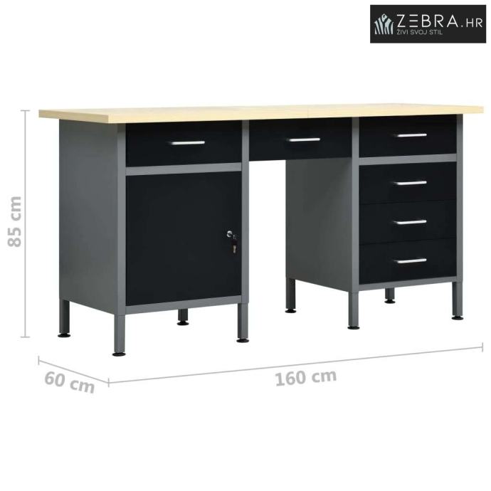 Izdržljivi radni stol ističe se velikim prostorom za pohranu i nosivošću od 500 kg. Velika i čvrsta stolna ploča pruža stabilnu platformu za sve popravke. Radni stol ima 6 ladica, što osigurava da možete dobro organizirati svoje alate, dijelove i pribor poput vijaka, čavala i ljepljive trake. Sve ladice opremljene su mehanizmom s kugličnim ležajem za glatko klizanje. Tu su 2 police s vratima koja se mogu zaključati, za jednostavno smještanje bušilica, bubnjeva s kabelom i brusilica. Uz to, noge se mogu podesiti po visini. Ova radna stanica izrađena je od vrhunskog čelika i konstruiranog drva, što je čini izuzetno čvrstom, izdržljivom i jednostavnom za čišćenje. Lako se sastavlja.