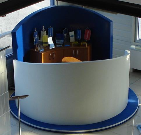 Bijeli zid i ormarić su prodani, cijena vrijedi za sve ostalo (stol + podest + plavi zid).