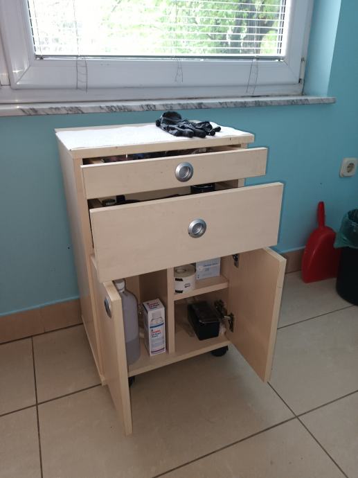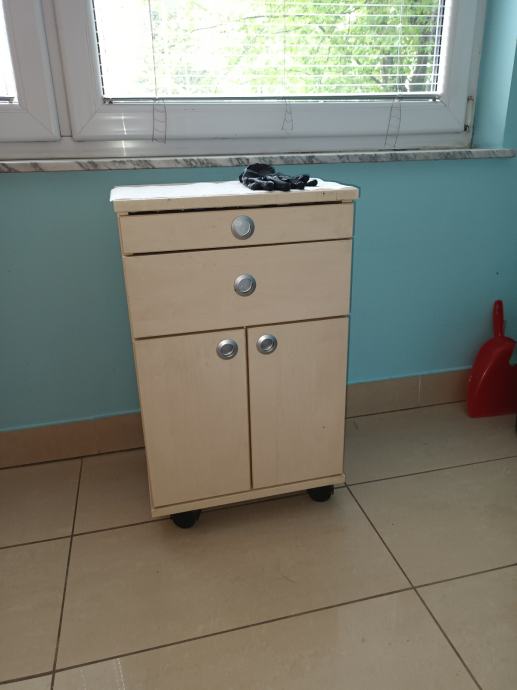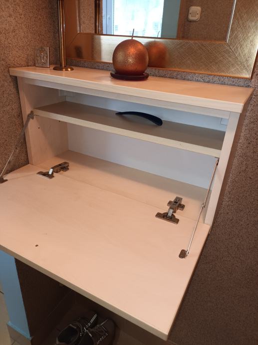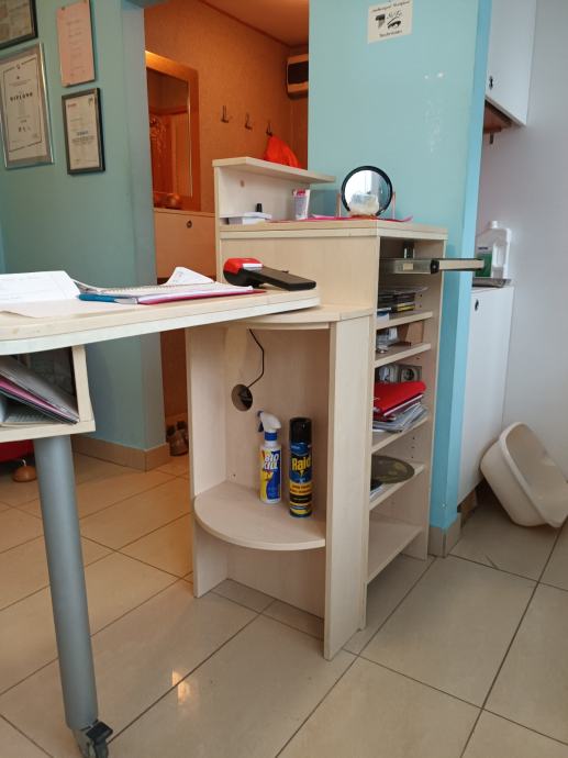 Pult je pomicanje te se nogica može blokirati u željenu poziciju. Ima pomičnih dio za tipkovnicu te mjesto za komp. U izvrsnom stanju