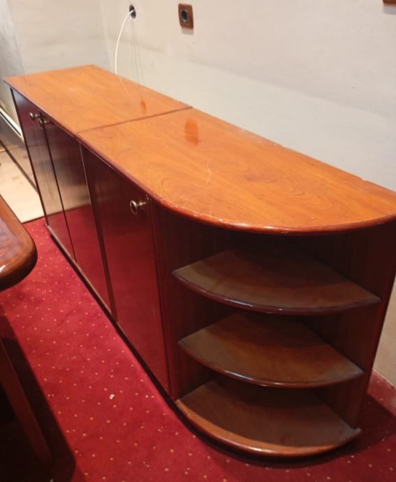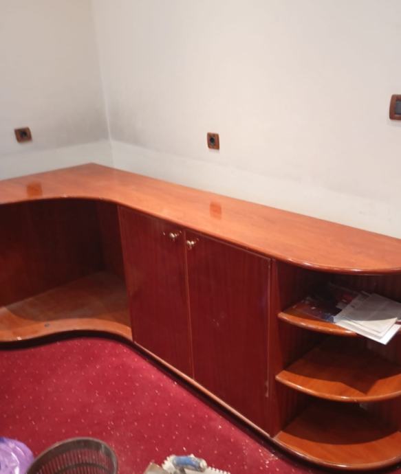 Na prodaju su tri komada uredskog namještaja od mahagonija u odličnom stanju.Komadi su lakirani sa pet slojeva sjajnog laka, nije industrijski proizvod, izrađeno je od strane stolara starog kova.Namještaj se nekad nalazio u uredu koji je zatvoren ali namještaj kao takav je pogodan npr.i za nekakvu konobu,dimnu kuhinju,garažu,man cave... namještaj se nalazi u Splitu u garaži na Zenti,dostava nije moguća,kupac mora doći po namještaj.