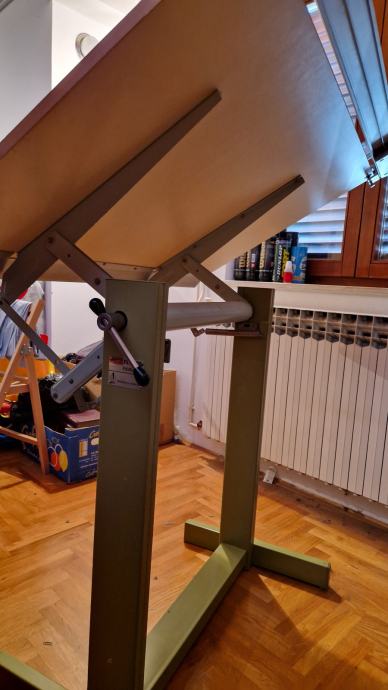 Baza stola je metalna, s neograničenim mogućnostima prilagodbe visine i nagiba crtaće daske koja je načinjena od drveta - dimenzija 120x70 cm.