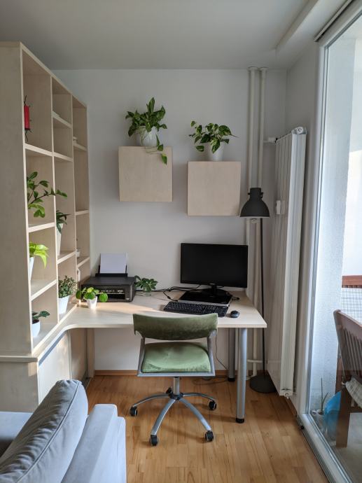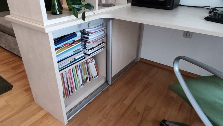 Prodajemo unikatni kutni radni stol s pregradom i ormarićem za pohranu (s dvoja klizna vrata).