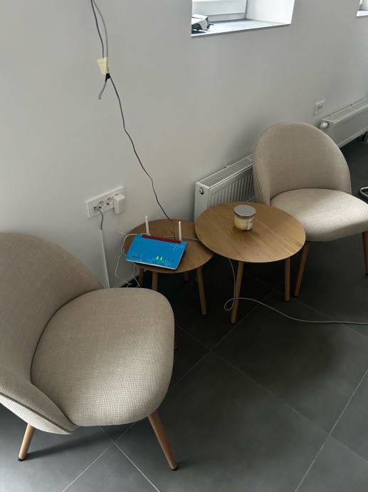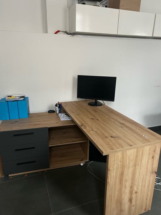 Prodaje se uredska oprema sa slika, dva radna stola, uredska stolica, konferencijska stolica i malo kutak. Sve skupa za 800€. Nije moguce odvojeno kupiti stvari