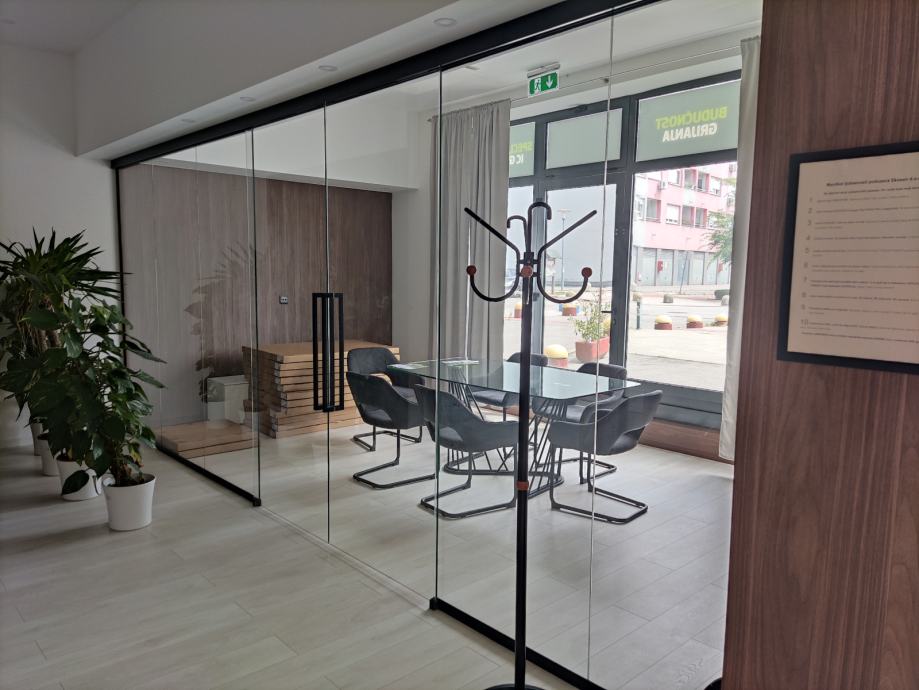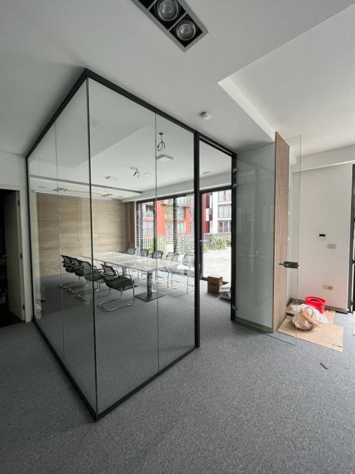 Staklena stijena, pregradni stakleni zid, pregradni zid, klizna stijena, stakleni zid, kaljeno staklo, uredska stijena