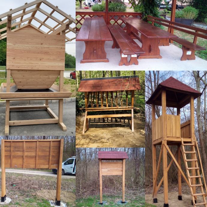 Proizvodimo po narudžbi: stolove i klupe, hranilice za divlje životinje, lovačke čeke, oglasne ploče, putokaze i drugo...
