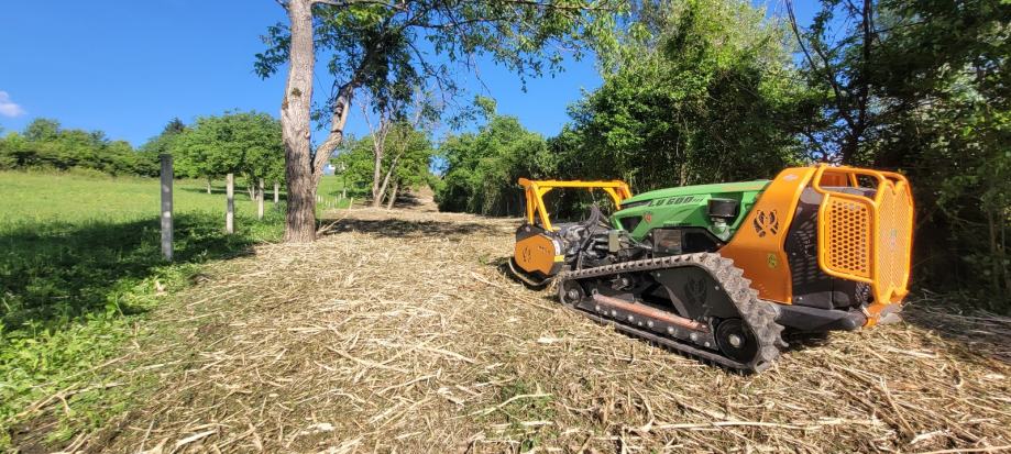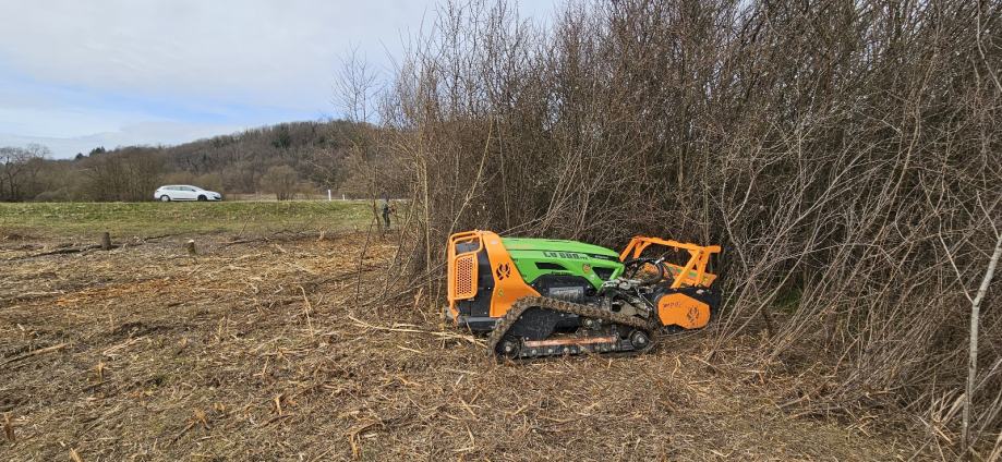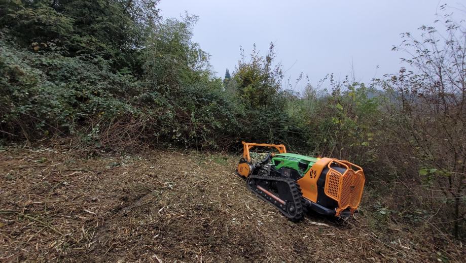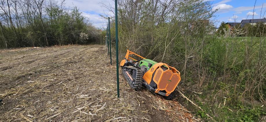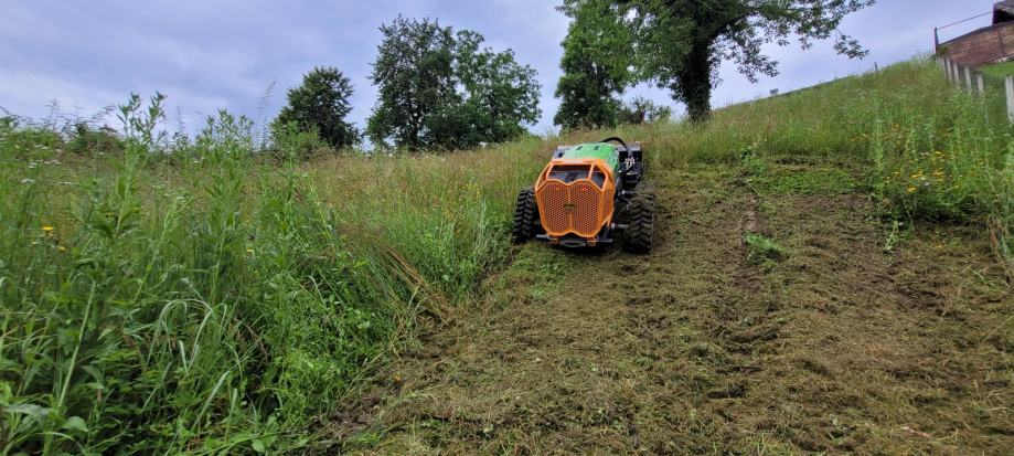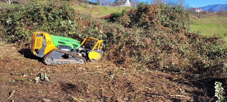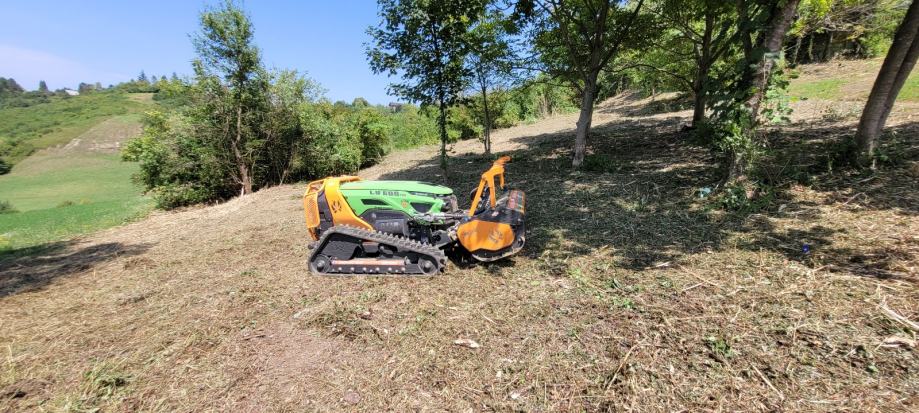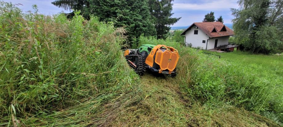 Koristimo specijalizirani stroj MDB Green Climber LV600 PRO koji može sigurno raditi na nagibima do 60 stupnjeva, što ga čini idealnim za teško dostupne i strme terene.