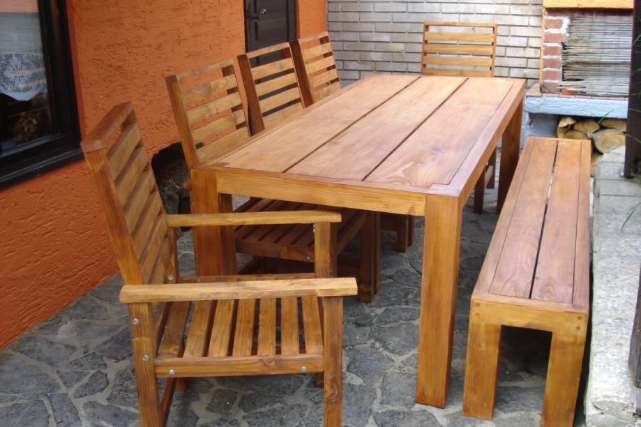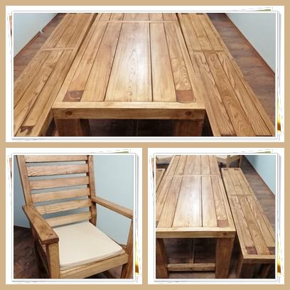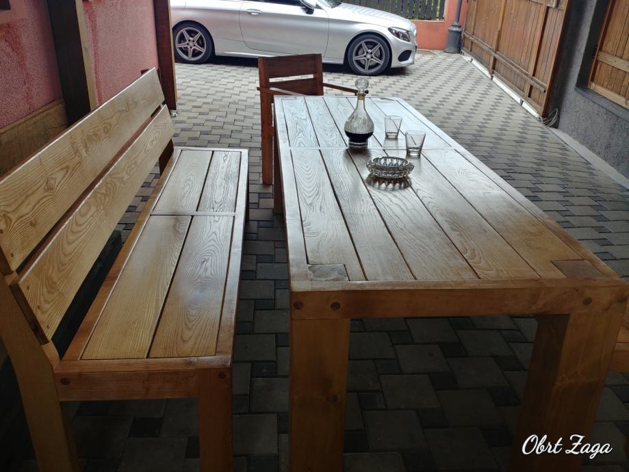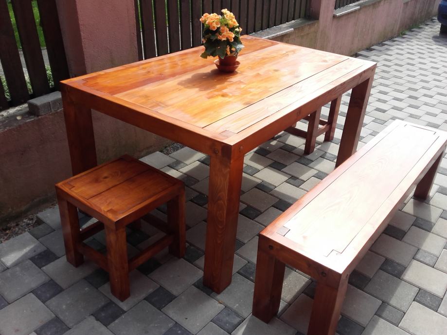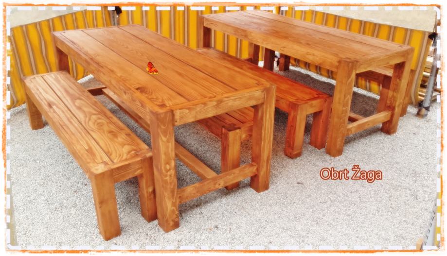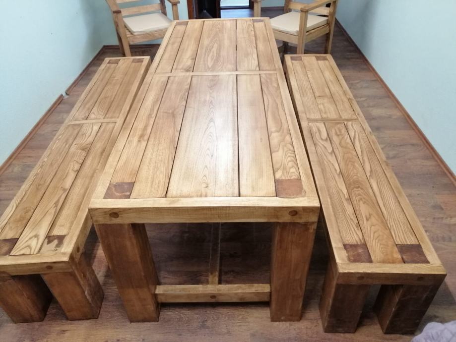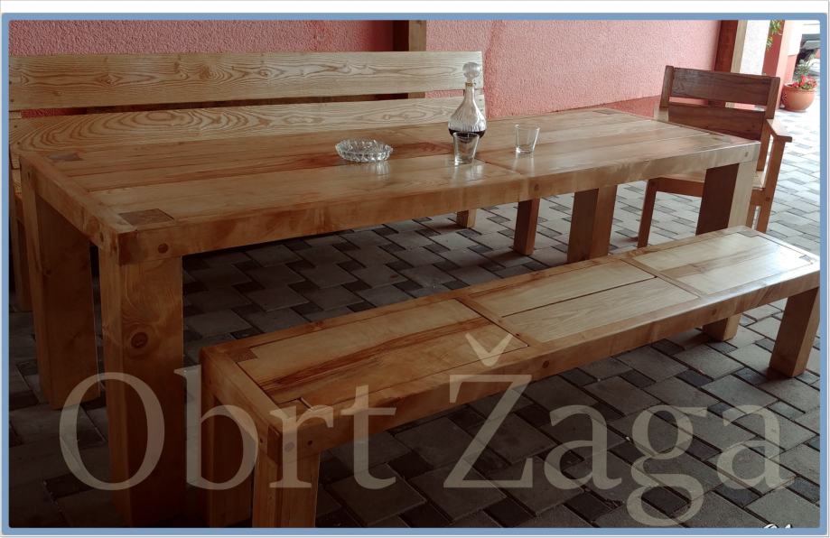 Masivni stolovi,stolice i klupe od jasena ili hrasta.