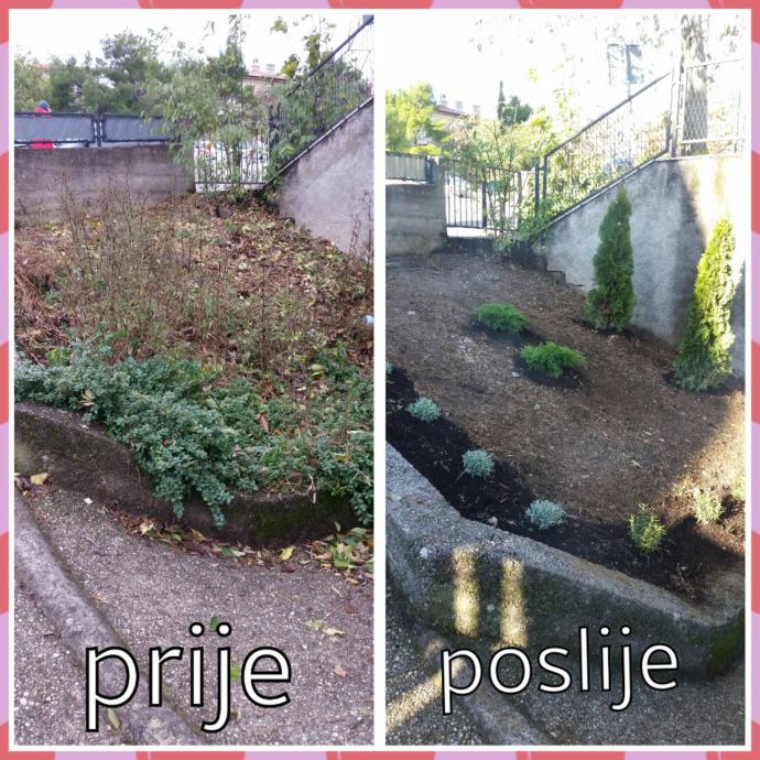 Mi koristimo vrhunski sadni materijal što garantira dugotrajno uživanje u ljepoti vašeg bilja ili zelenila, također koristimo ekološka gnojiva koja su potpuno neškodiva za Vas i Vaše kućne ljubimce. Vršimo kompletnu uslugu od sijanja travnjaka, sadnje voćaka, bilja i zelenila, pa do redovitog održavanja Vaše okućnice( košenje, obrezivanje živice i sl.). Vašu zelenu površinu naš tim će održavati na obostrano zadovoljstvo.Novo u našoj ponudi je čišćenje podruma, tavana.. te zbrinjavanje otpada na deponij.Na raspolaganju smo vam svaki dan 7 dana u tjednu . OBRATITE NAM SE S POVJERENJEM!