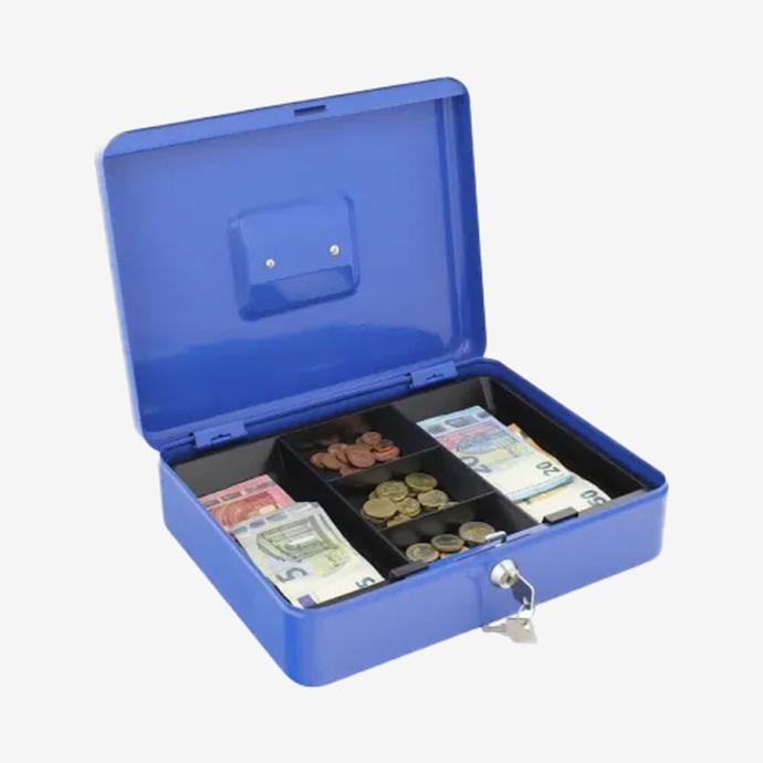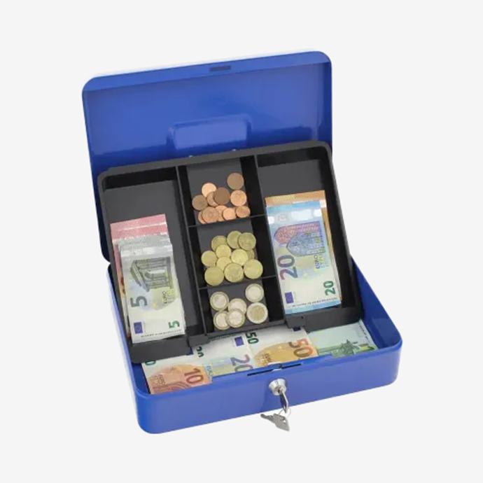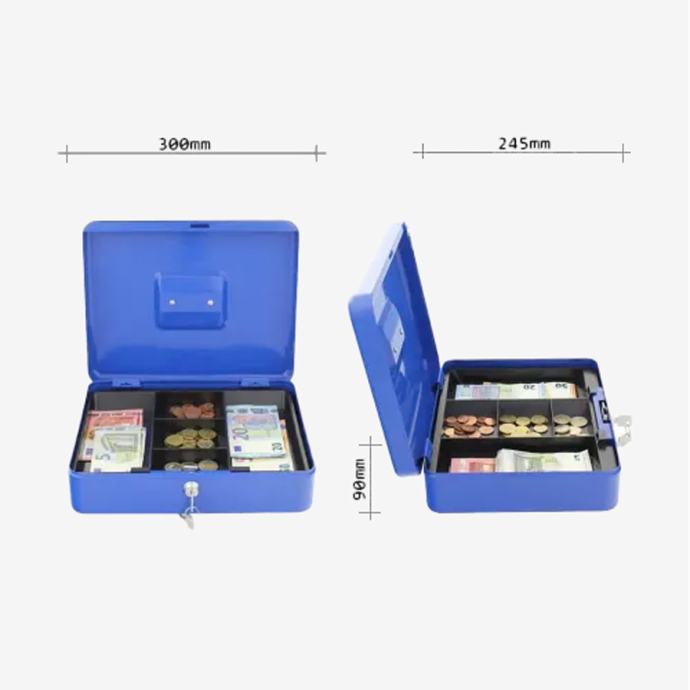Kasa za novac Traun 4 plave boje tvrtke Rottner Tresor uvjerava vas u kvalitetu svojim bezvremenskim i jednostavnim, a opet čvrstim dizajnom. Kućište i poklopac izrađeni su od visokokvalitetnog čeličnog lima i povezani su čvrstim i stabilnim šarkama. Umetak za novac je crne boje. Uključena su 2 ključa.