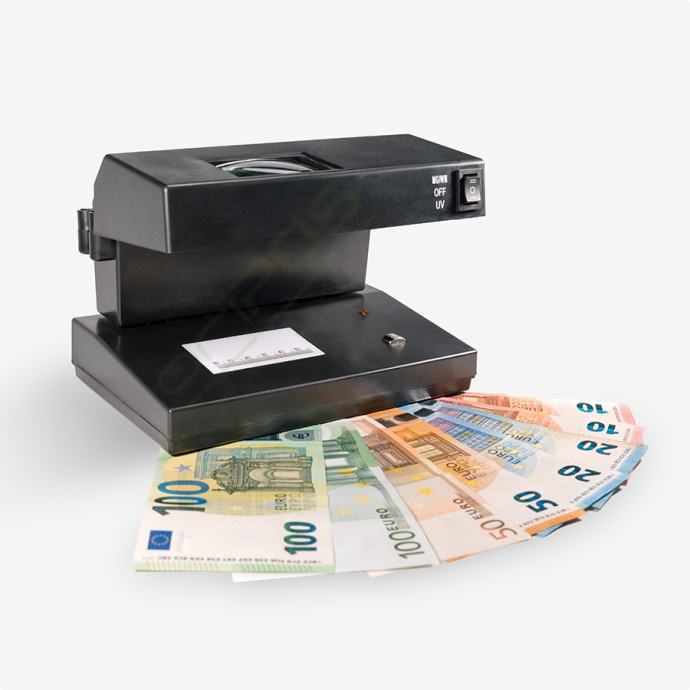 Visoko kvalitetan uređaj koji otkriva krivotvorene novčanice pomoću UV svjetla (ultraljubičasto svjetlo), povećalom, skeniranjem magnetne trake te skeniranjem vodenog žiga pomoću bijelog svjetla (white light).