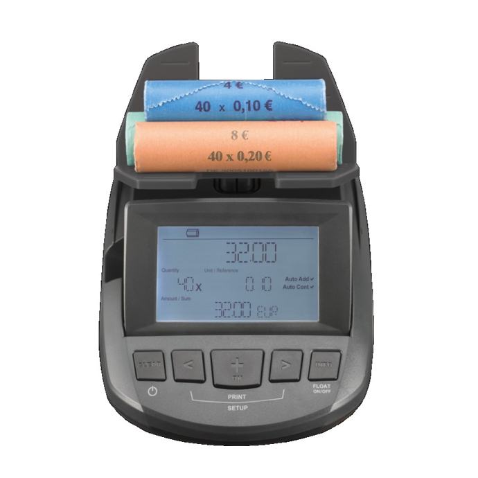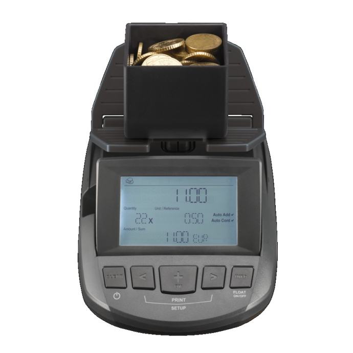 S našim pristupačnim početnim modelom RS 1200 možete jednostavno brojati Euro kovanice i Euro novčanice. Samorazumljivo vođenje izbornika Vas automatski prati kroz kompletno gotovinsko računovodstvo.