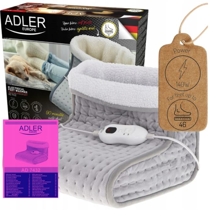 Grijač stopala savršeno je rješenje za ljude koji su lako sjebani i ljudi s cirkulacijskim problemima u bilo kojoj dobi. Uređaj vam omogućuje podešavanje temperature grijanja odabirom jedne od četiri razine grijanja. Veličina grijača podešena je na stopala do 46. Grijač s vanjske strane izrađen je od mekog pliša i na unutrašnjosti ugodne umjetne vune. Unutarnja sintetička vuna je uklonjiva, što omogućava higijensko pranje.