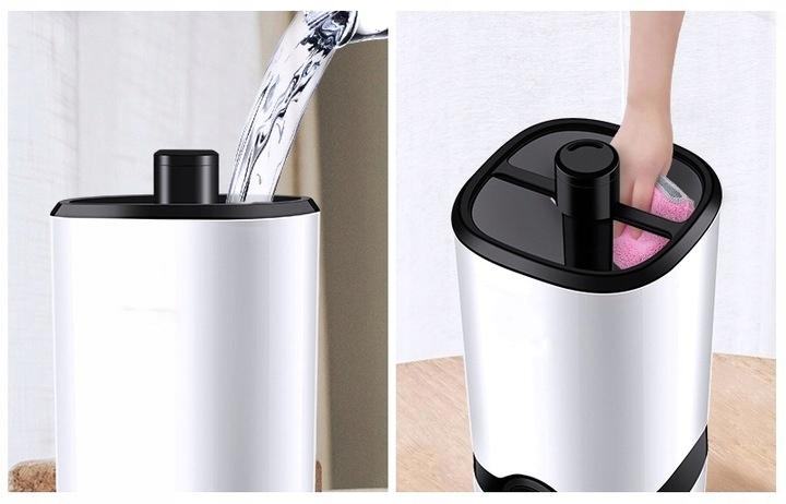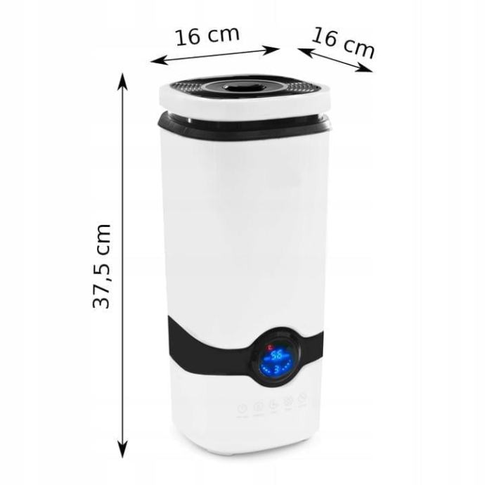 Specifikacija -White; Materijal: plastika; Snaga: 28W; raspon: 20m2; Volumen spremnika: 4L; Učinkovitost: 300ml / h; Ionizator: Da; Hygrostat: Da; Timer: Da; Touch Plate: Da; Opskrbljeni daljinski upravljač: Da; Noćni način: Da; Promjena u par pare: Da; Metoda stalne vlage: Da; Ulja u kompletu: 3; Dimenzije: 14/14/37 cm; Težina: 0,950 kg